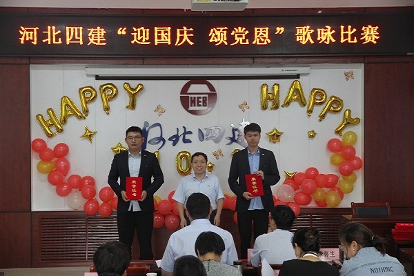 经过激烈的角逐,最终由六分公司安晨旭、赵文博合唱《祖国不会忘记》凭借出色的表现和深情的演绎,荣获本次歌咏比赛一等奖;天津分公司绳丽静独唱《春天的故事》,九分公司孙瑞池独唱《我爱你中国》荣获二等奖;公司机关李立敏、崔月月、董璐、张凤静歌曲联唱《咱们工人有力量》《强军战歌》,九分公司钱硕、朱怡颖、赵苑普、王然、李子宇合唱《强军战歌》,七分公司刘冲独唱《我和我的祖国》,公司机关张凤静独唱《东方之珠》,一分公司王丽霞独唱《今天是你的生日》,河北四建侯晨独唱《千千阙歌》荣获三等奖。